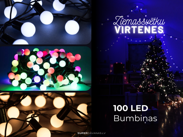 100 LED bumbiņu lampiņu virtene.